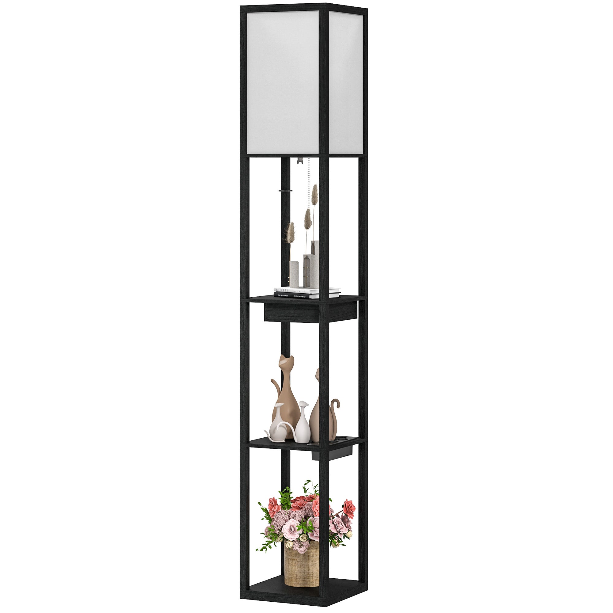 Gulvlampe med 3-lags hylde, fodkontakt, usb-porte, mdf, sort